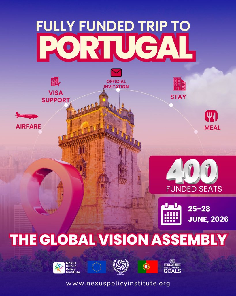 Applications are now open for The Global Vision Assembly 2026, a flagship international youth policy and leadership conference organized by the Nexus Public Policy Institute in the heart of Europe. The conference will take place in Portugal from June 25 to June 28, 2026, welcoming 400 global participants for four days of high-level policy dialogue, leadership development, and global networking in the heart of Europe.